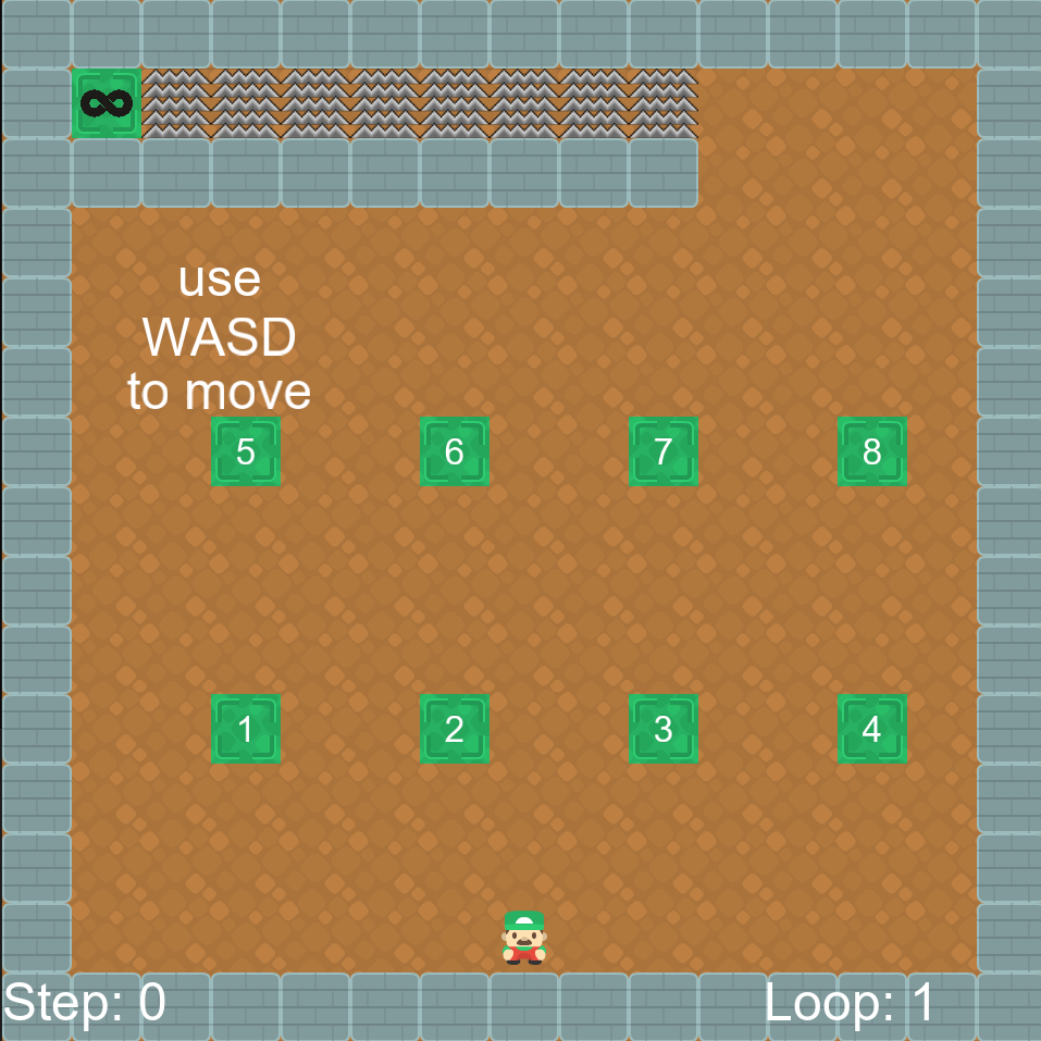 - Movement: You and your shadow have 8 moves per loop. Moving into obstacles still counts. Waiting does not. Being pushed doesn't count as a move.